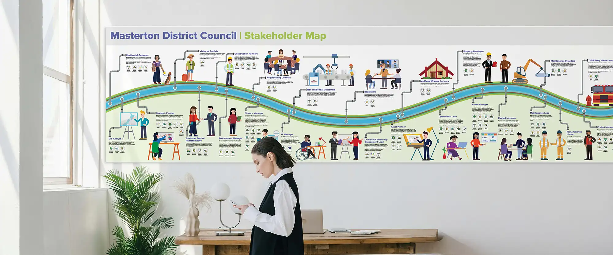 The final deliverables included two large designs spanning 1 metre wide to 3-4 metres long, providing a clear and structured visual reference for planning, procurement, and long-term infrastructure management. These visuals will continue to support council teams in navigating operational challenges and improving service delivery.